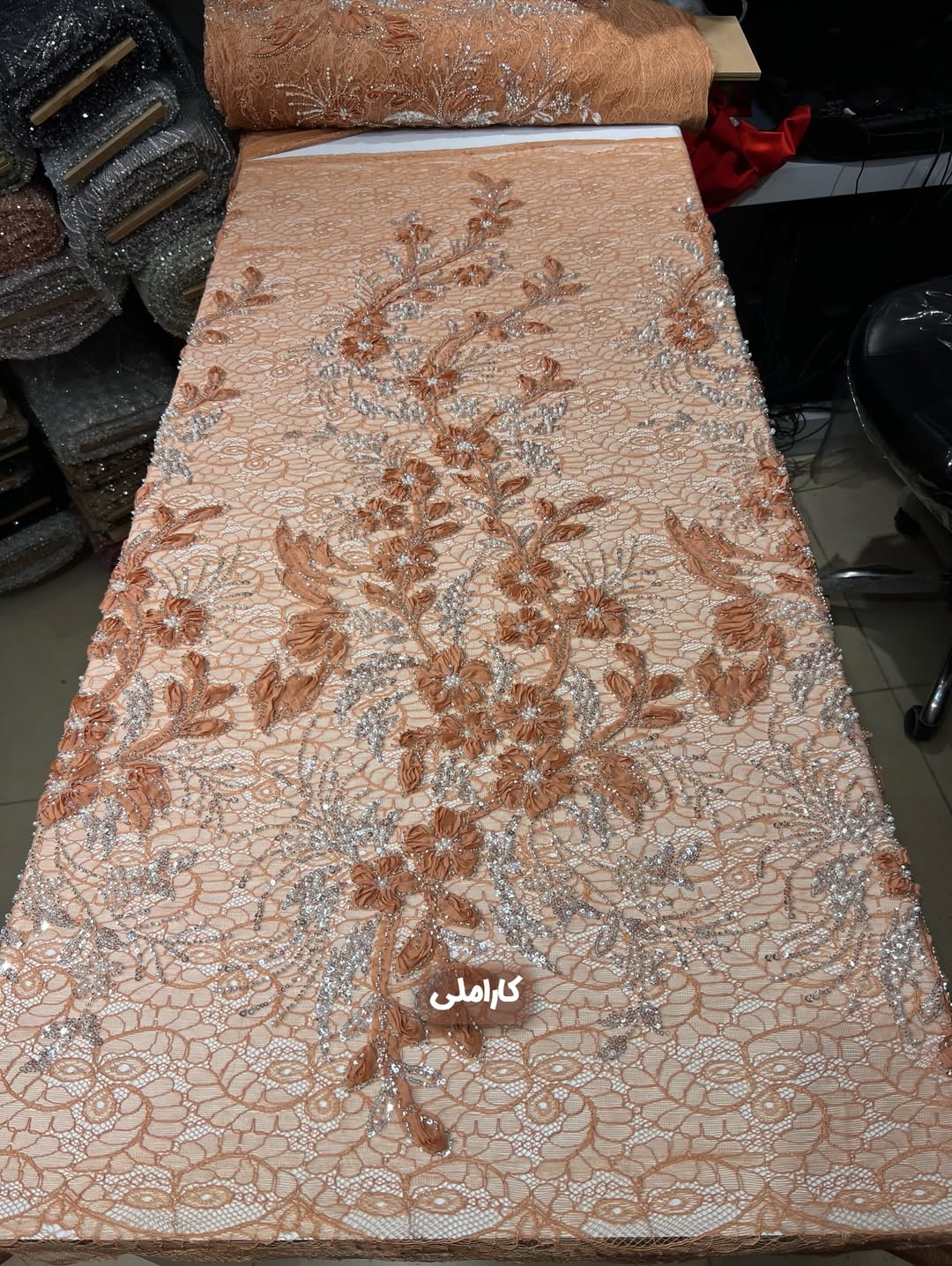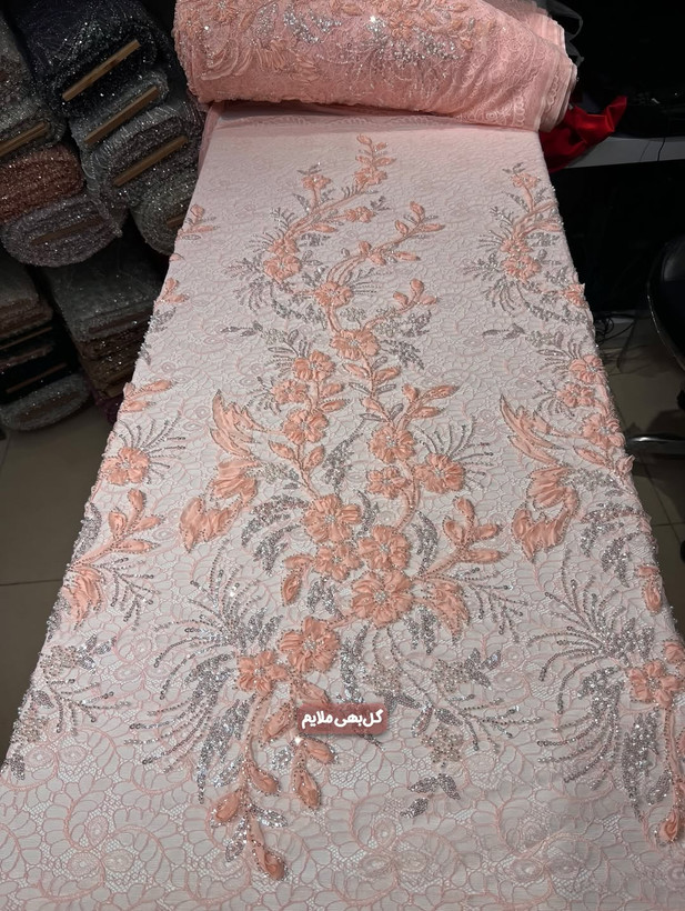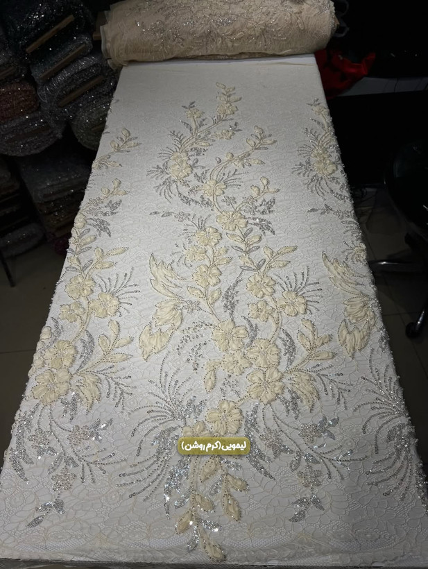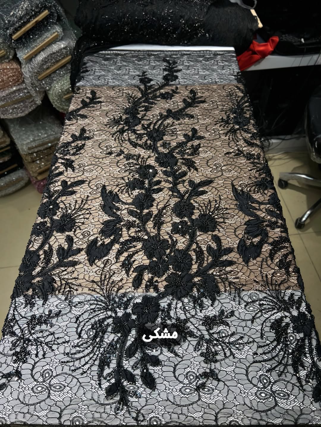 ورق بزنیدبازشده گ کامل دانتل فرانسه دیزاین گلبرجسته حریر کار جدید و ترند برای دوخت انواع کت مجلسی ، لباس مجلسی و لباس محلی و… با بهترین کیفیت جزییات پارچه؛ تور دانتل درجه یک با کشسانی مناسب گلهای برجسته حریر دوزی منجوق های سنگی پولک آیینهای درخشان مروارید های ریز صدفی.