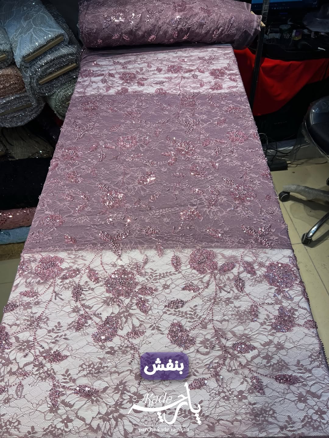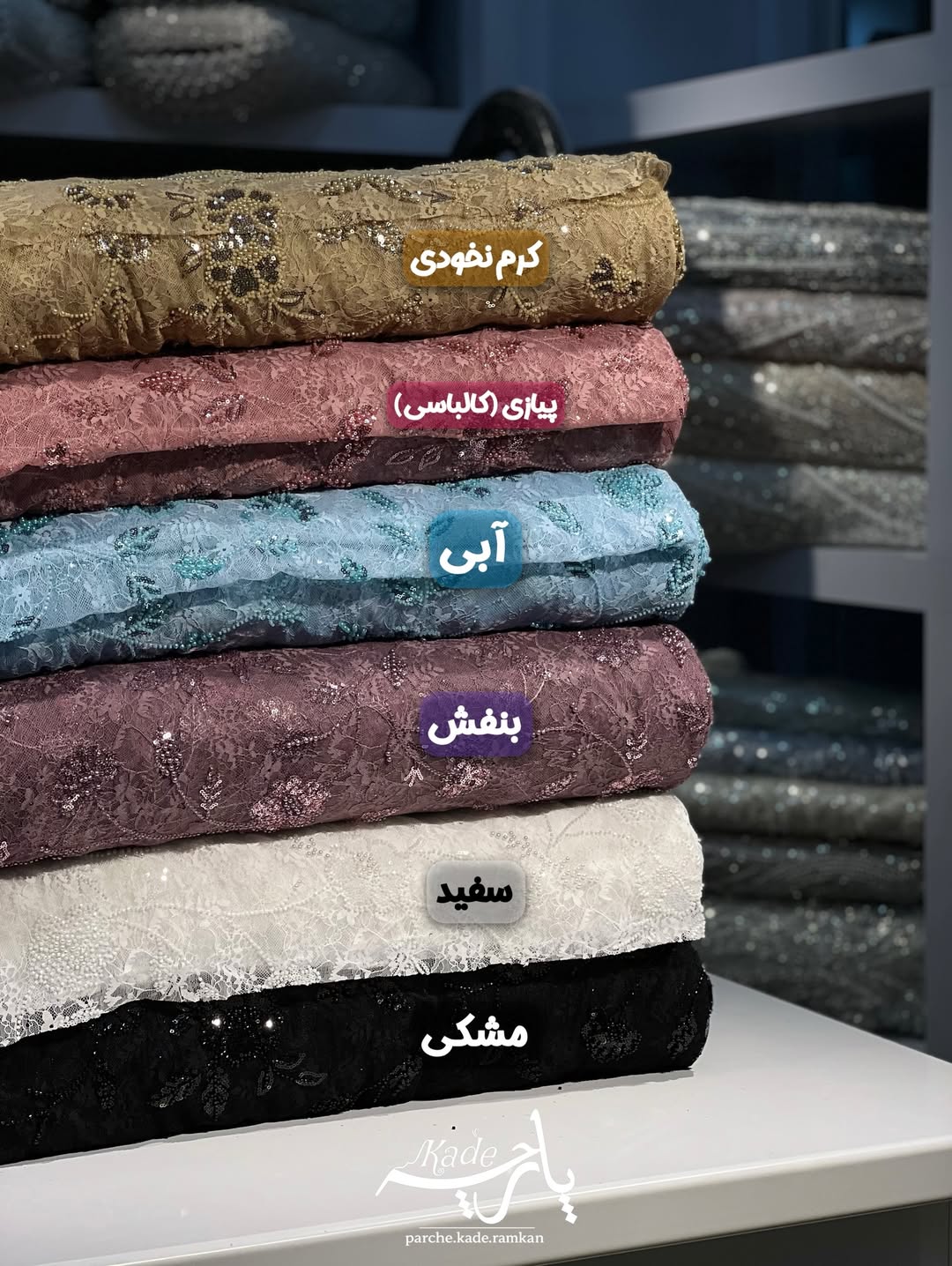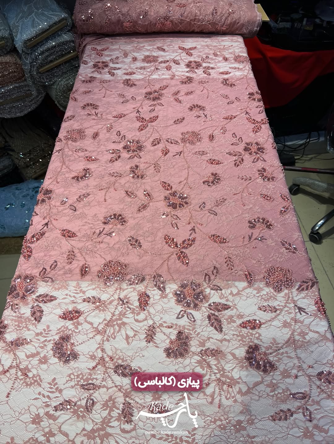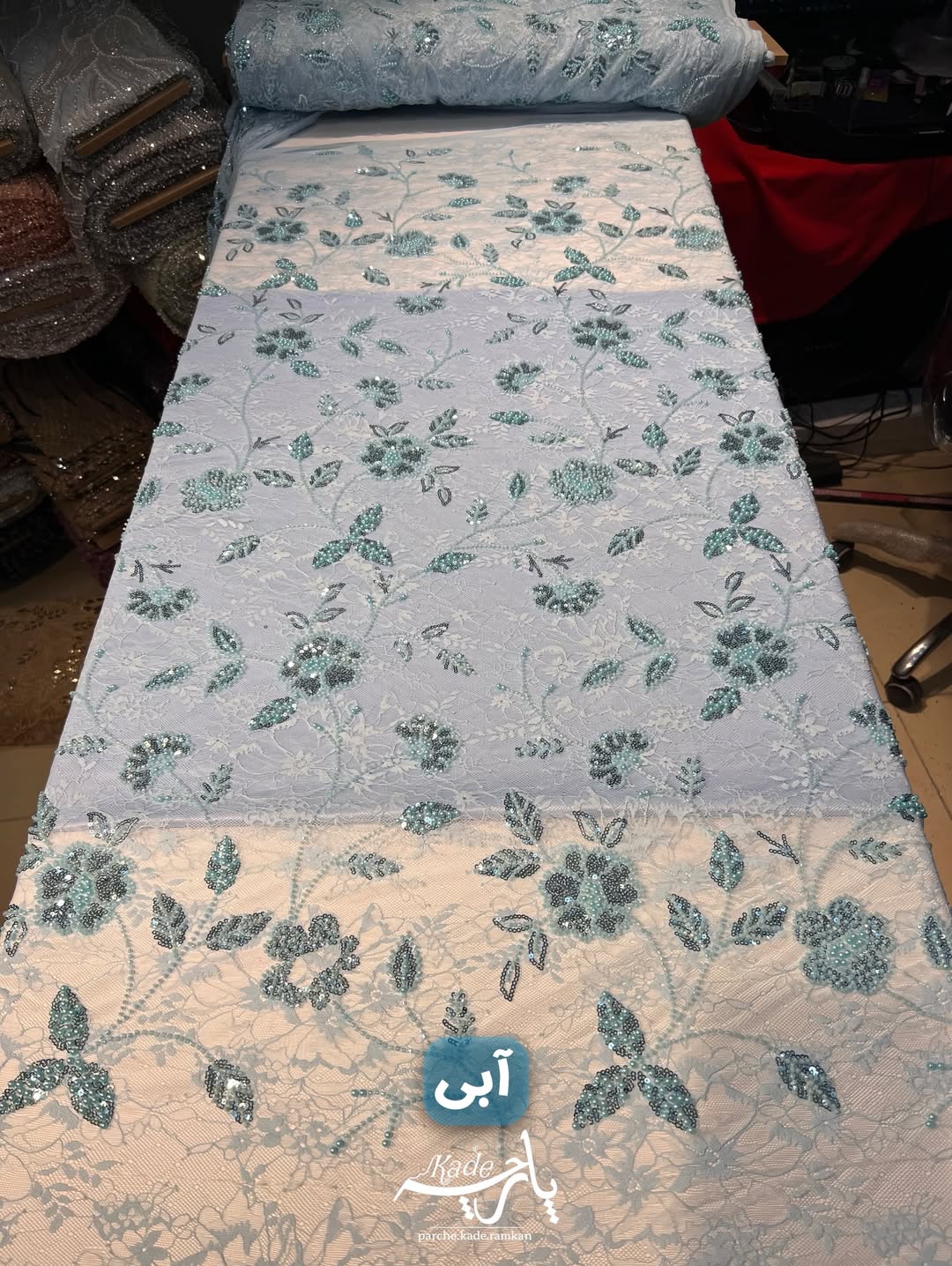 کار بسیار شیک و ترند با تور با کیفیت و کشسانی بالا. زیرشو میتونید با آستر های مختلف امتحان کنید. جزییات پارچه؛ تور دانتل منجوق دوزی با درخشش عالی. عرض مفید ١۴۵ سانت.