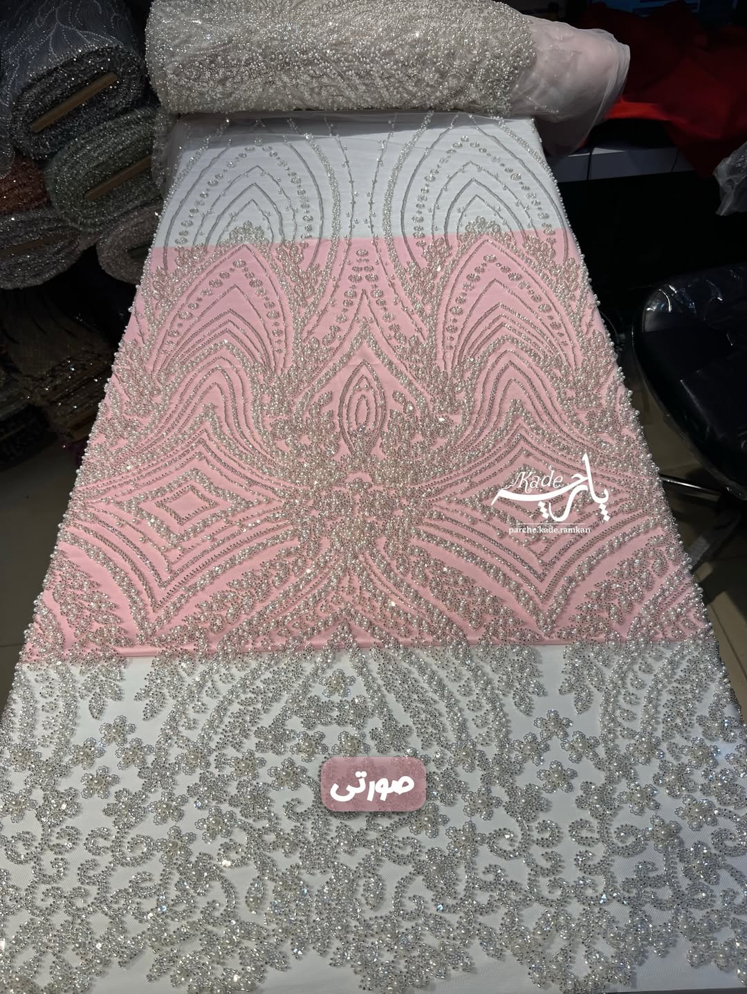 این شاهکار انتخابی بینقص برای هر مراسمیه طرح محبوب "لاکچری" VIP با جزییات پارچه؛ تمام دوخت (دو دور دوخت شده) منجوق کریستالی درخشان پولک های ریز آیینه ای شاه مروارید و مروارید